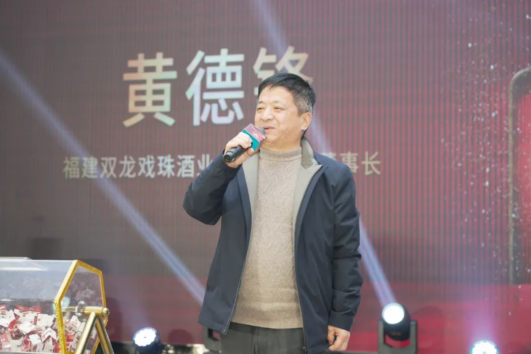 12月23日,雙龍戲珠寧德旗艦店周年慶貴賓答謝會在寧德艷陽金鼎軒隆重舉行。福建雙龍戲珠酒業(yè)有限公司董事長黃德鋒、寧德宜嘉玖順商貿(mào)有限公司總經(jīng)理陳俊生出席活動并致辭。