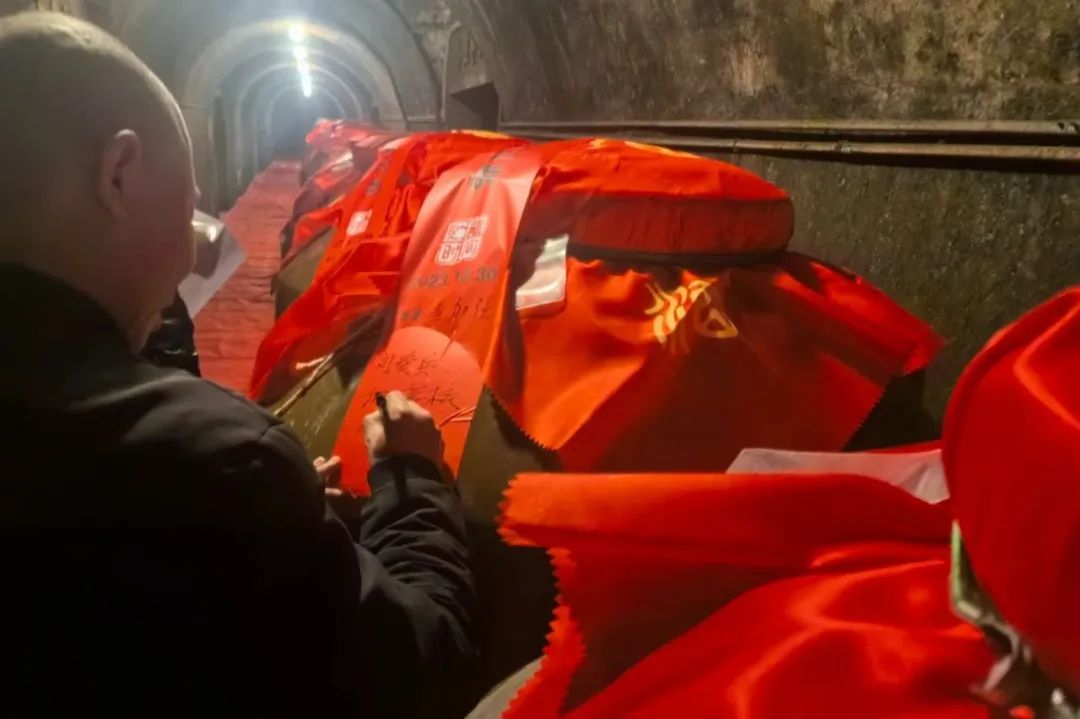 封壇活動(dòng)上,存酒客戶們進(jìn)行了雙龍戲珠洞藏醬酒探秘之旅,進(jìn)入雙龍洞封壇,貼原酒號碼貼、封條簽名、持收藏證合影留念,了解建甌三千年酒文化,體驗(yàn)12987坤沙醬香工藝,參觀生態(tài)洞藏儲酒區(qū)——“東南第一洞藏”雙龍洞。